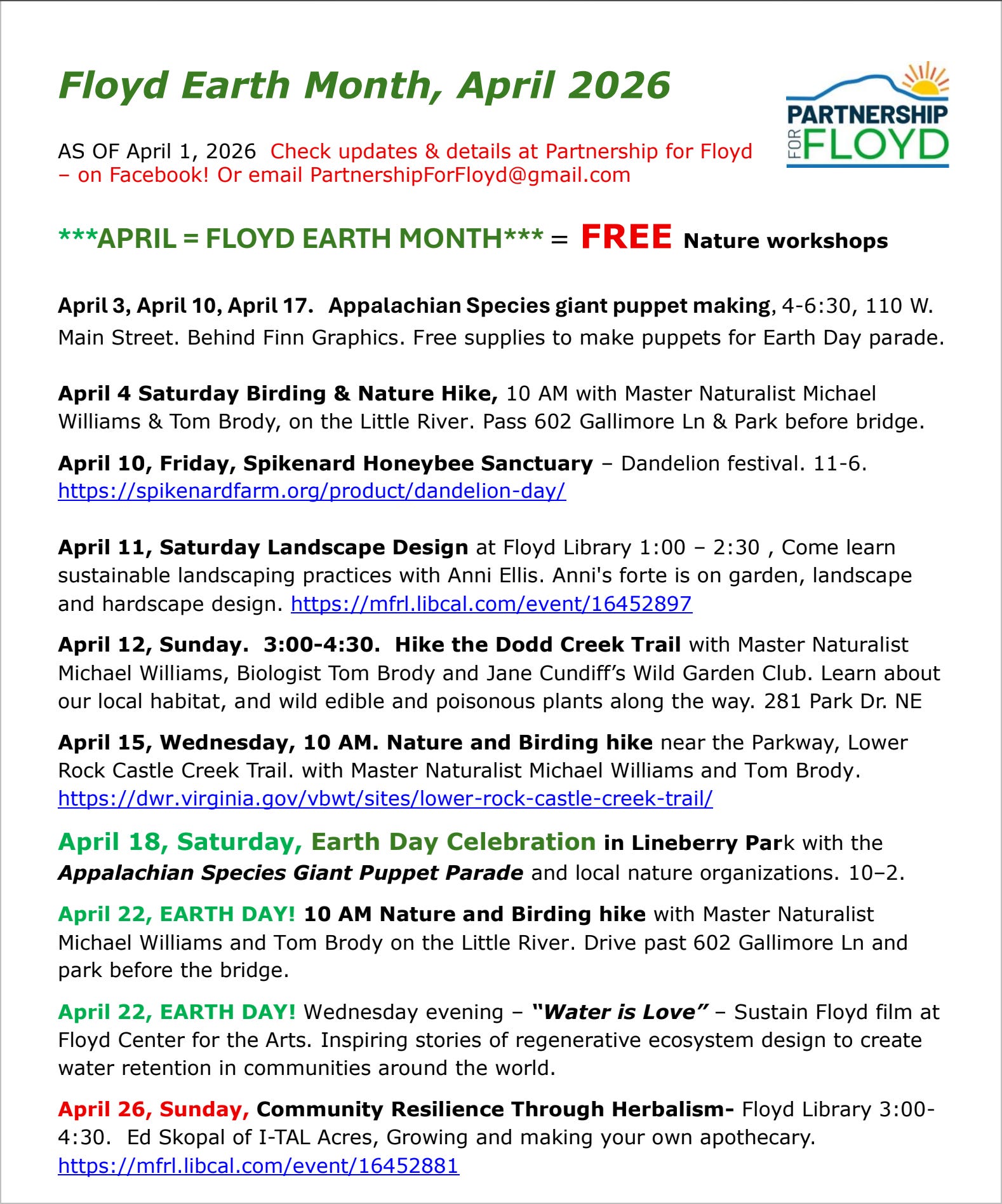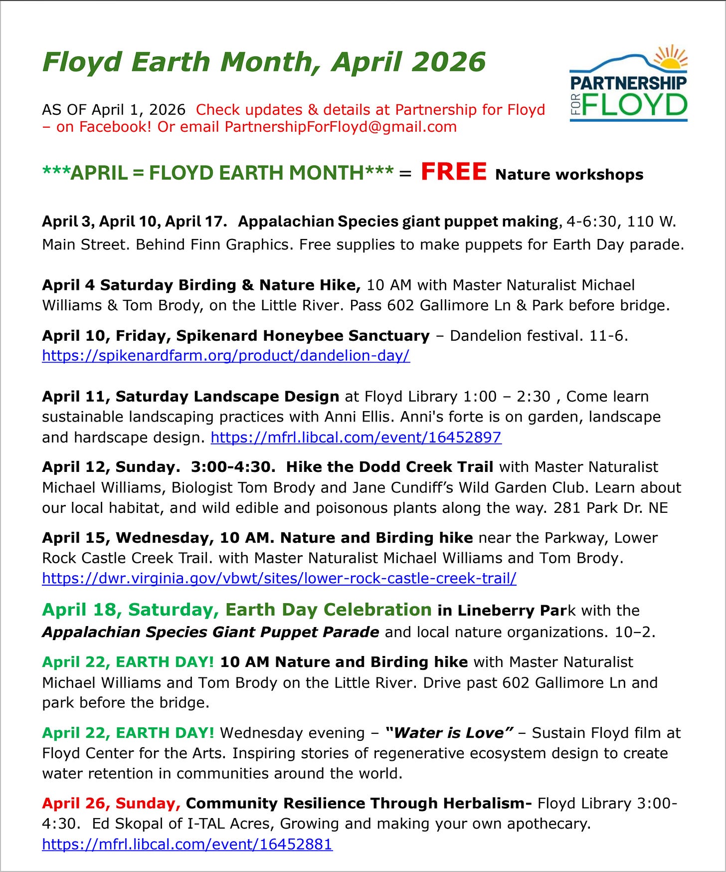 Nice Earth Month thoughts! Thanks for the reminders and thanks for sharing our little town Earth Month activities! See you on the trails!
