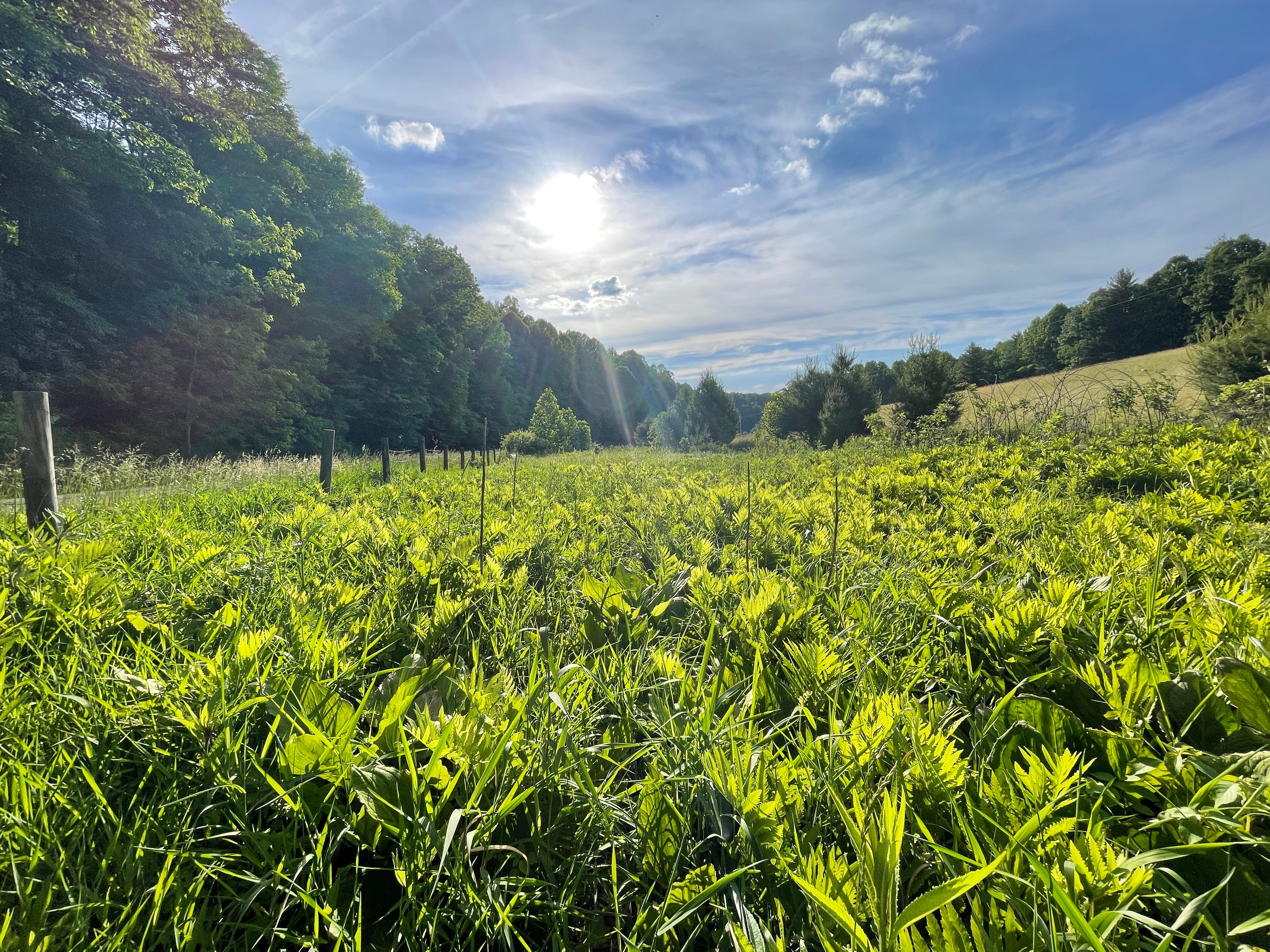 In our first two summers here (2020 and 2021) the owner of the land saw fit to cut this quarter acre back to the roots. I can’t imagine why. So far, and thankfully, it remains undisturbed—like our pasture—to go where its literal historical roots and nature sends it.