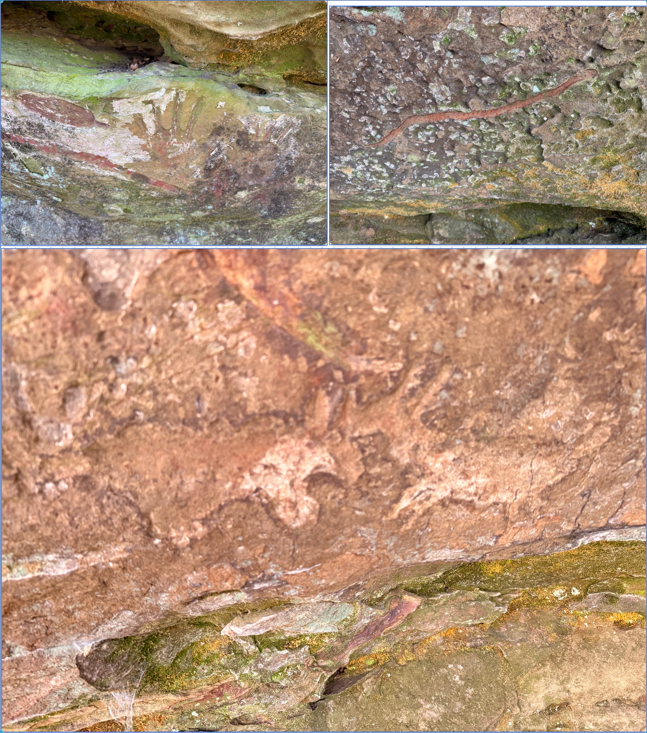 Above left: handprints Above right: snake Bottom: hooved animals